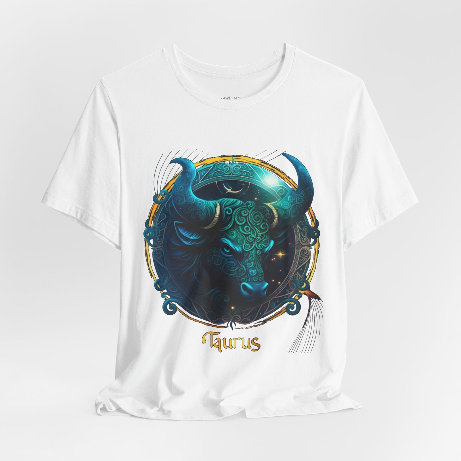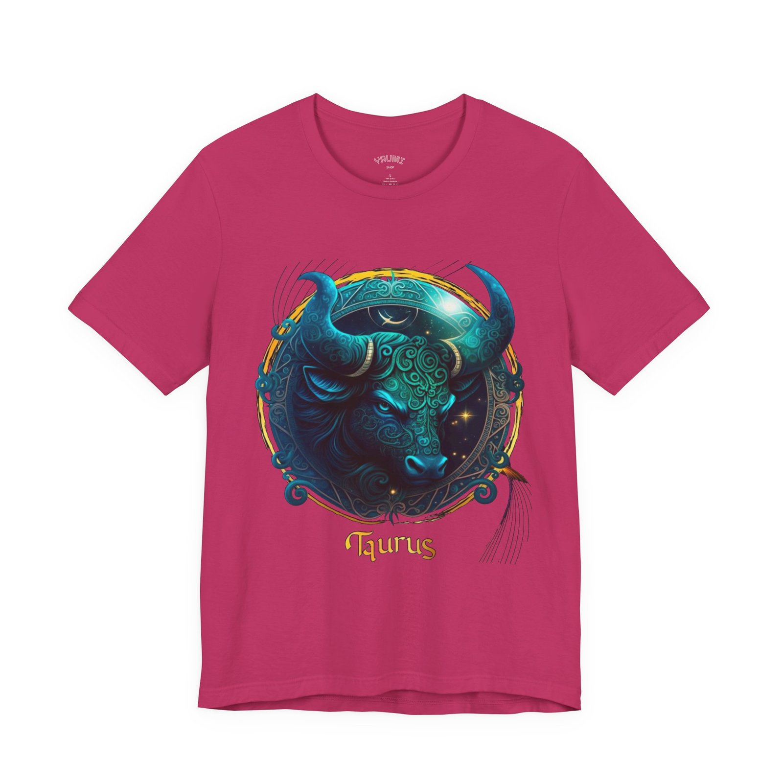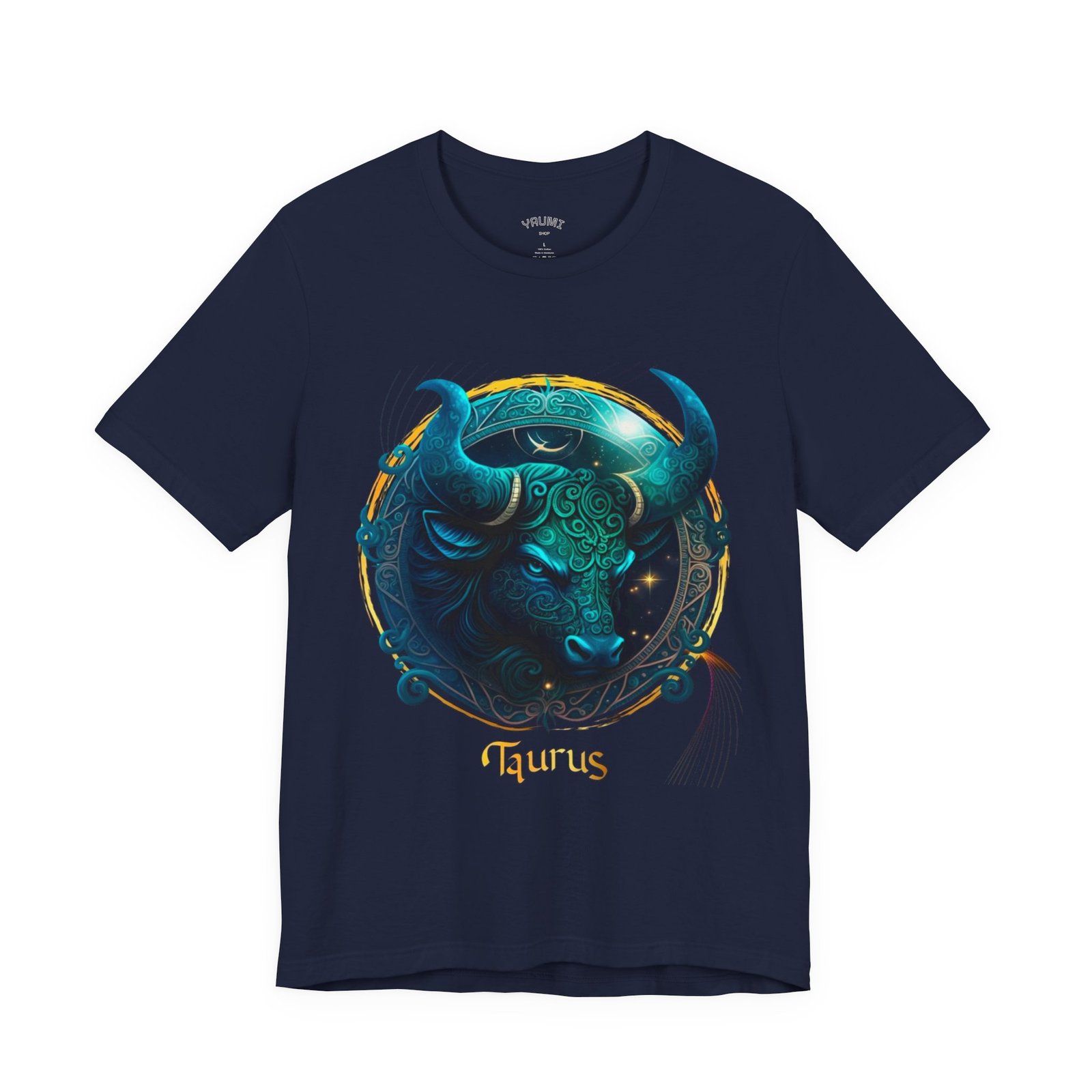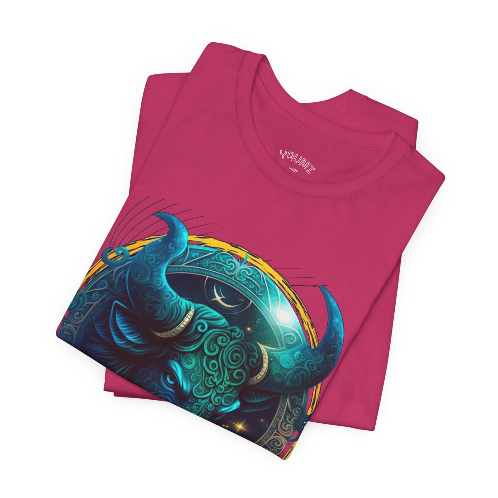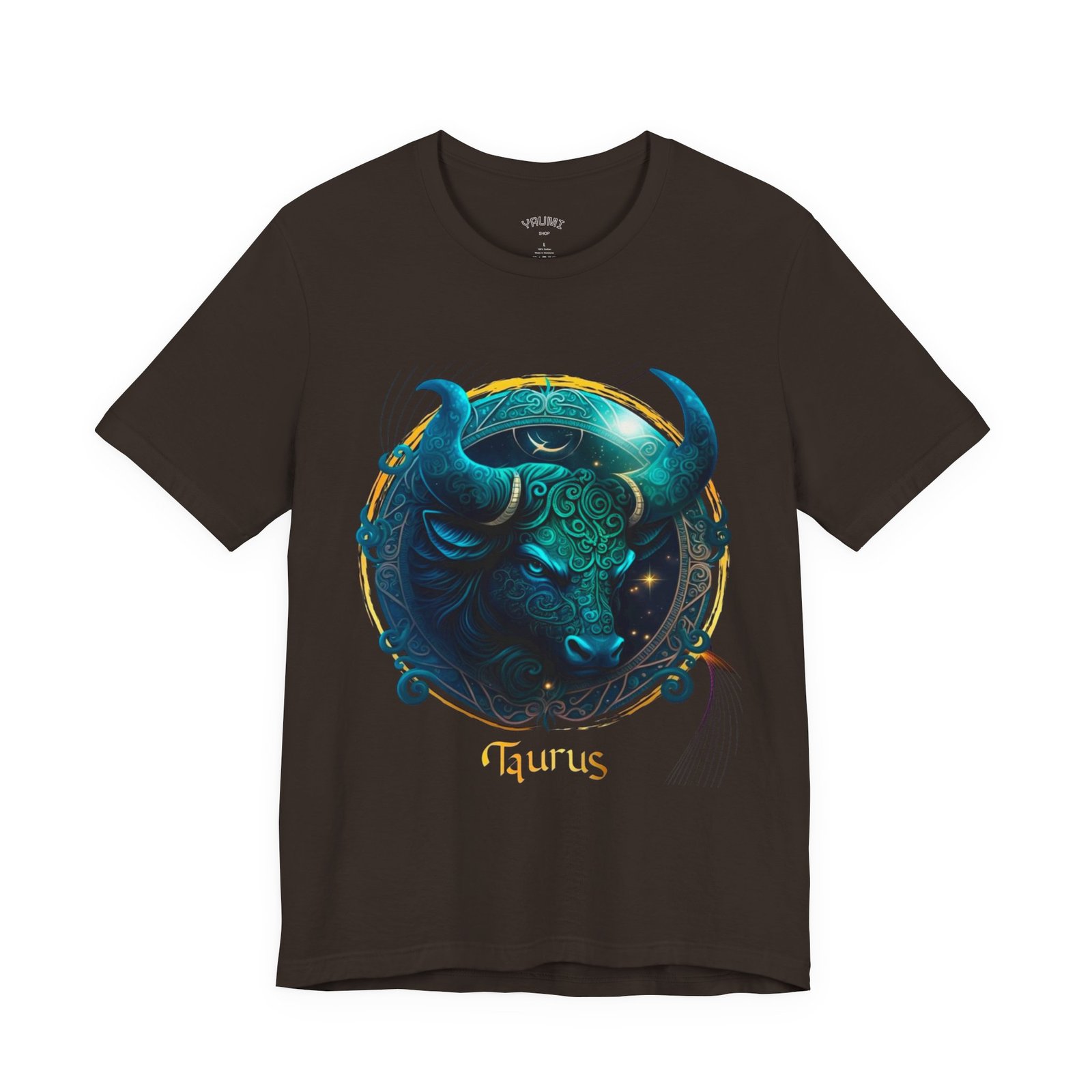 This tee brings the grounded strength of Taurus to your everyday wardrobe. The artwork centers on a richly detailed bull rendered in deep teal and gold accents, framed by an ornate circular motif that feels both celestial and handcrafted. Lightweight Airlume combed cotton keeps the shirt breathable and soft against the skin, while the retail crew neckline and side seams hold a neat, structured silhouette that layers easily under jackets or stands out on its own. Subtle, high-detail printing preserves the illustration’s swirling textures and metallic highlights, so the zodiac symbol reads like a small talisman rather than a loud logo. Wear it on slow mornings, weekend market walks, or when you want a quiet reminder to stay steady and rooted.